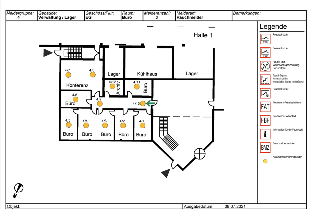Feuerwehrlaufkarten dienen dazu, der Feuerwehr im Einsatzfall den Weg von der Brandmeldezentrale (BMZ)zum ausgelösten Brandmelder zu zeigen. Sie sind besonders wichtig für Gebäude mit Brandmeldeanlagen (BMA), da sie die schnelle und präzise Lokalisierung des Brandherds ermöglichen.