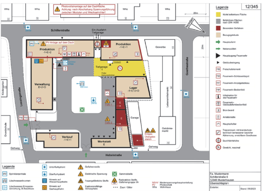 Die Pläne enthalten Informationen über die Gebäudestruktur, Fluchtwege, Löschwasserversorgung und besondere Gefahren, die der Feuerwehr helfen, die Lage besser zu beurteilen und eine geeignete Einsatzstrategie zu entwickeln.